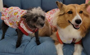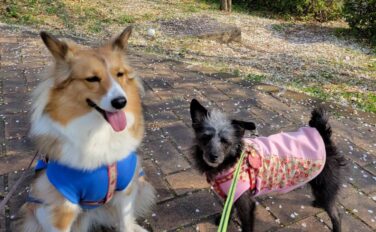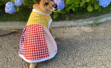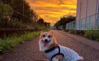 夕日が綺麗な日の写真を送っていただきました。胴体の長い子の飼い主の偏見かもしれませんが、胴体の長い子はワンピースがホントにちゃんとワンピースに見えて、とてもいい感じっ!色違いのコーギーさんとお揃いで来て、二人並べて散歩したら、めちゃくちゃか...