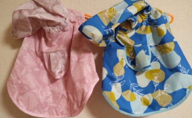 オーダーメイド [注文No.102] 200着達成! 中&小型犬用 水玉柄のクールネック と 白いワンピース と 紫陽花柄のレインコート&お散歩バッグ